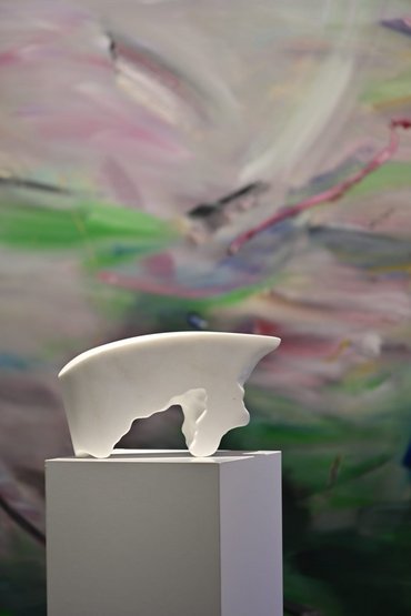 Preisträger Stefan Böhm mit der Skulptur IMAGINATION DER FORM In Carrara-Marmor