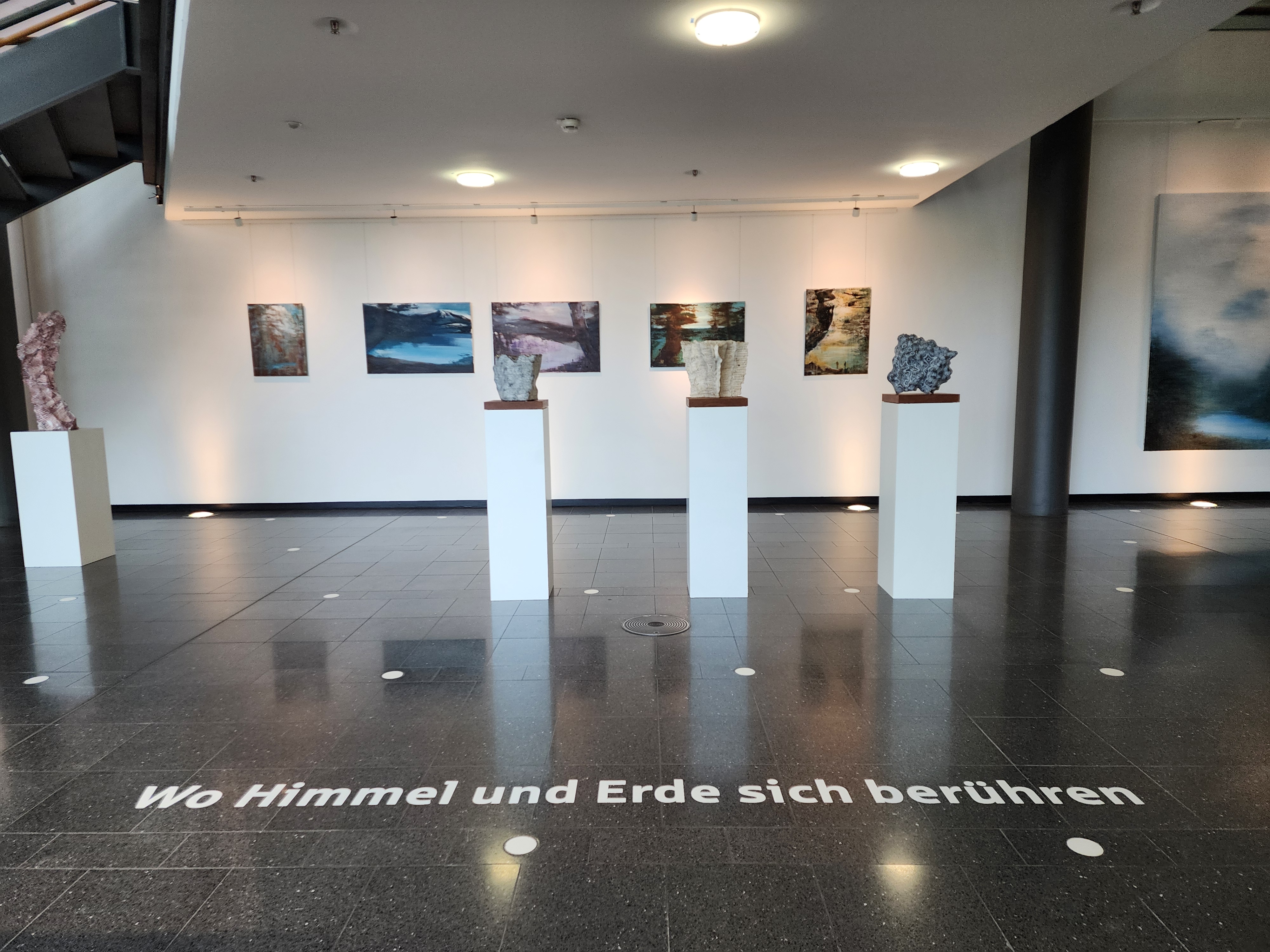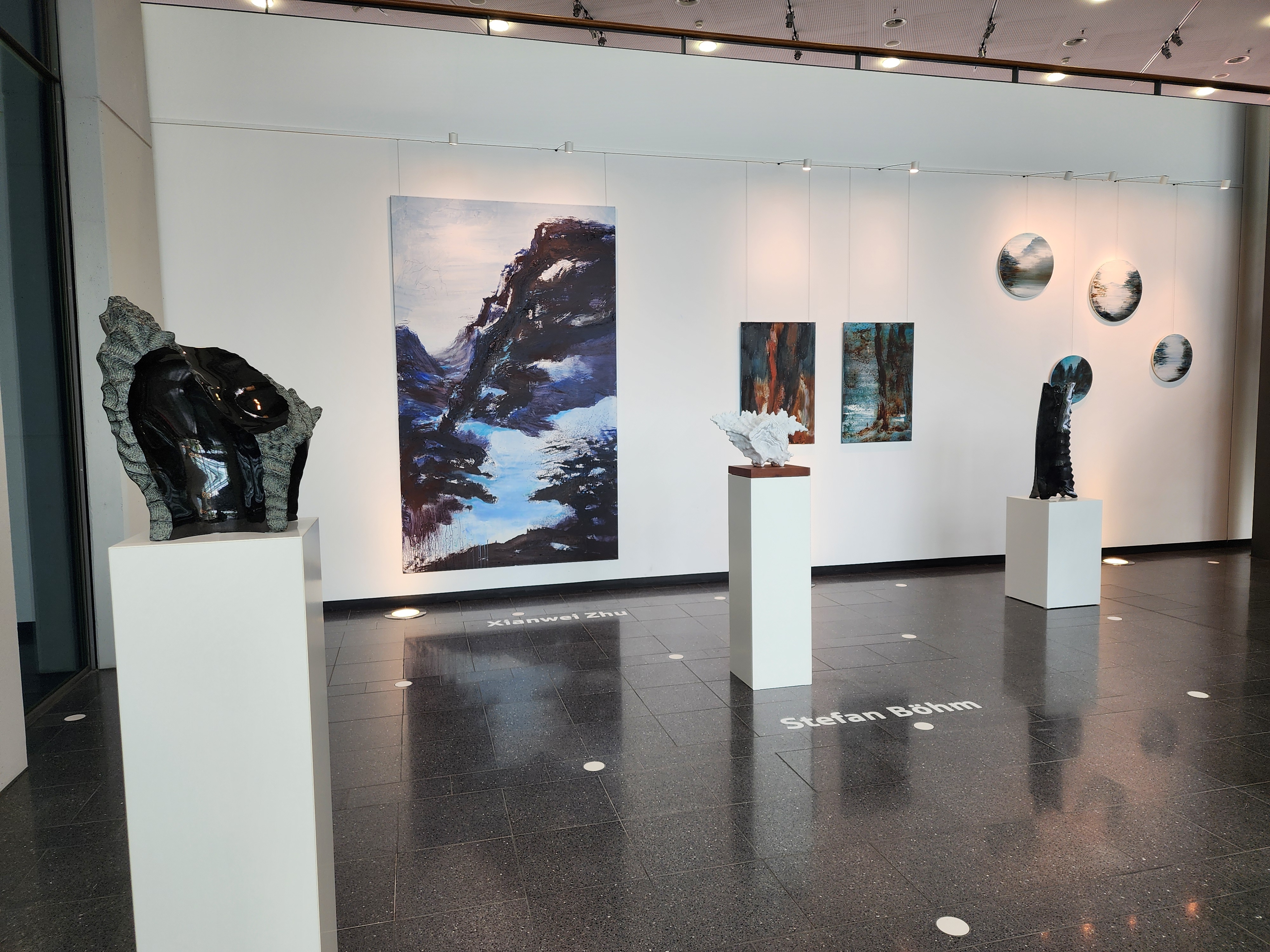 Unter dem Titel WO HIMMEL UND ERDE SICH BERÜHREN werden Steinskulpturen von Stefan Böhm und Gemälde von Xianwei Zhu erstmals zusammen ausgestellt. Beide Künstler hinterfragen in ihrer Formensprache das Verhältnis vom Menschen zur Natur.