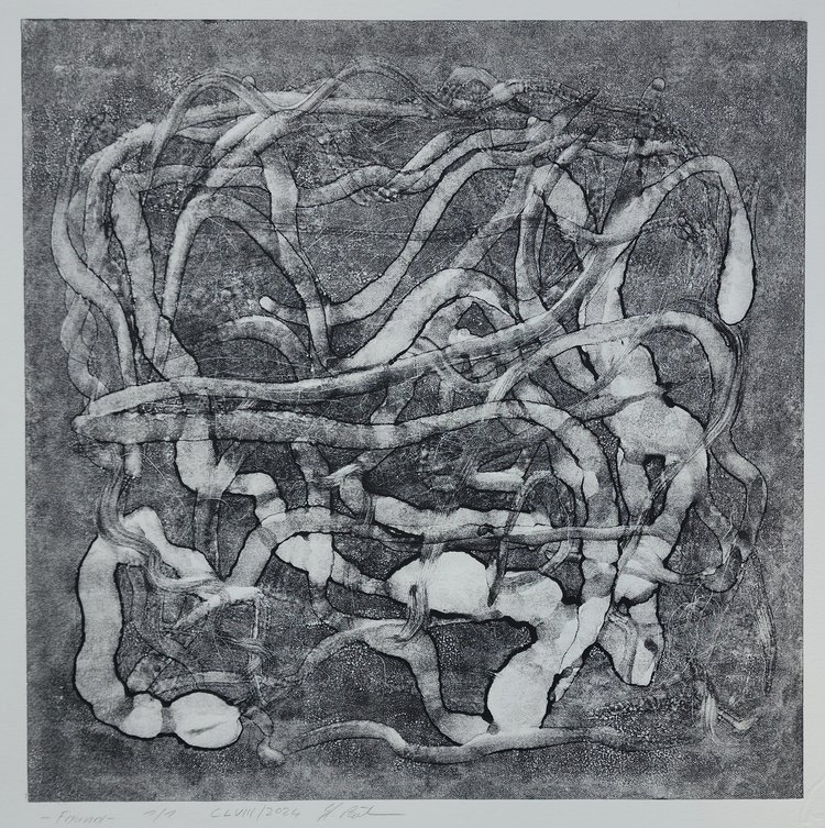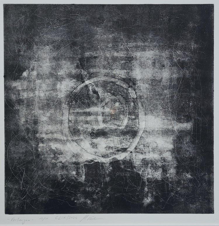 Verborgen 2024 Unikat / Monotypie auf Büttenpapier/ Grafik 50×50 cm mit Passepartout