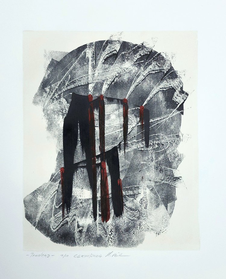 Tendenz 2024 Unikat / Monotypie auf Büttenpapier/ Grafik 40×50 cm mit Passepartout